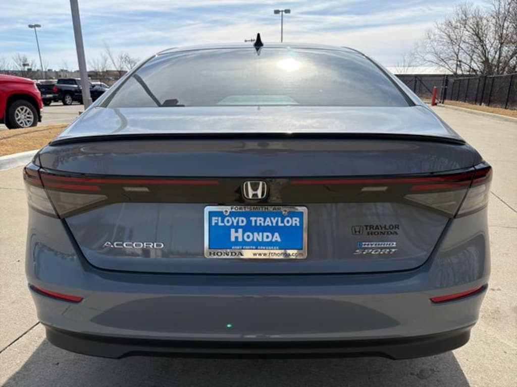 Floyd Traylor is proud to present. Urban Gray Pearl 2025 Honda Accord Hybrid Sport FWD eCVT 2.0L I4 DOHC 16V 2.0L I4 DOHC 16V, 4-Wheel Disc Brakes, 8 Speakers, ABS brakes, Adaptive Cruise Control: Adaptive Cruise Control (ACC) with Low-Speed Follow, Air Conditioning, Alloy wheels, AM/FM radio, Apple CarPlay/Android Auto, Auto High-beam Headlights, Automatic temperature control, Blind Spot Information (BSI) System warning, Brake assist, Bumpers: body-color, Compass, Delay-off headlights, Driver door bin, Driver vanity mirror, Dual front impact airbags, Dual front side impact airbags, Electronic Stability Control, Emergency communication system: HondaLink, Exterior Parking Camera Rear, Fabric Seat Trim, Four wheel independent suspension, Front anti-roll bar, Front Bucket Seats, Front Center Armrest, Front dual zone A/C, Front reading lights, Fully automatic headlights, Heated Front Bucket Seats, Heated front seats, Knee airbag, Lane departure: Lane Keeping Assist System (LKAS) active, Leather Shift Knob, Leather steering wheel, Low tire pressure warning, Occupant sensing airbag, Outside temperature display, Overhead airbag, Overhead console, Panic alarm, Passenger door bin, Passenger vanity mirror, Power door mirrors, Power driver seat, Power moonroof, Power steering, Power windows, Radio data system, Radio: 180-Watt Audio System, Rear anti-roll bar, Rear reading lights, Rear seat center armrest, Rear side impact airbag, Rear window defroster, Remote keyless entry, Security system, Speed control, Speed-sensing steering, Speed-Sensitive Wipers, Split folding rear seat, Spoiler, Steering wheel mounted audio controls, Telescoping steering wheel, Tilt steering wheel, Traction control, Trip computer, Variably intermittent wipers, Wheels: 19" x 8.5J Berlina Black.