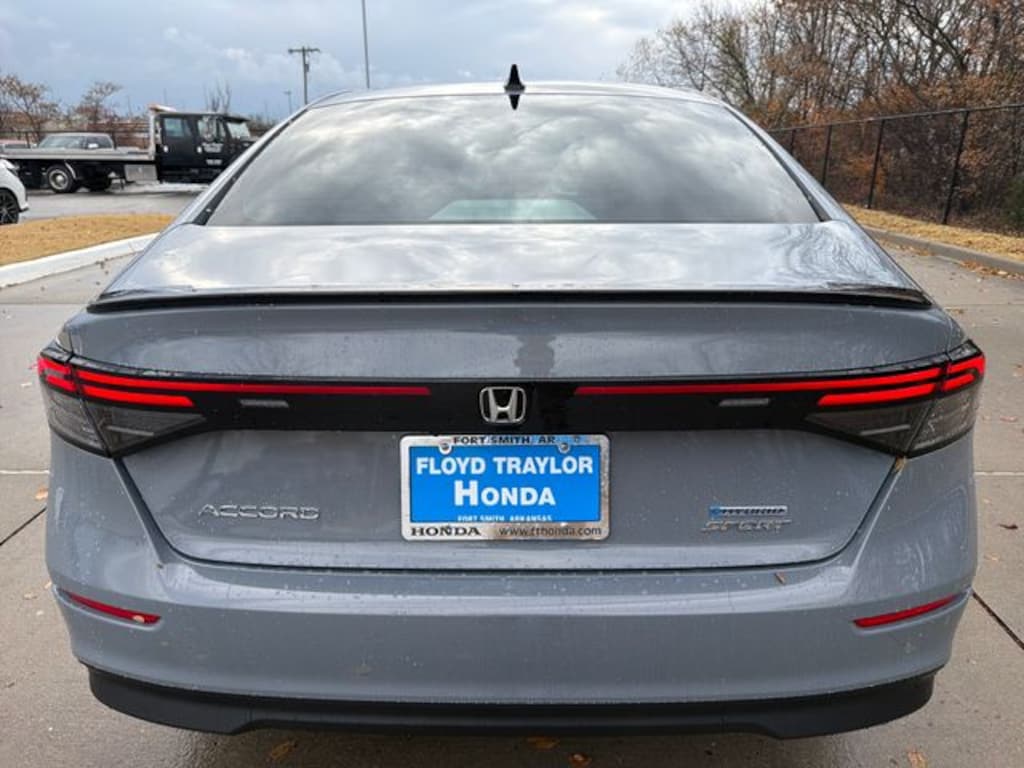 Floyd Traylor is proud to present. Urban Gray Pearl 2025 Honda Accord Hybrid Sport FWD eCVT 2.0L I4 DOHC 16V 2.0L I4 DOHC 16V, 4-Wheel Disc Brakes, 8 Speakers, ABS brakes, Adaptive Cruise Control: Adaptive Cruise Control (ACC) with Low-Speed Follow, Air Conditioning, Alloy wheels, AM/FM radio, Apple CarPlay/Android Auto, Auto High-beam Headlights, Automatic temperature control, Blind Spot Information (BSI) System warning, Brake assist, Bumpers: body-color, Compass, Delay-off headlights, Driver door bin, Driver vanity mirror, Dual front impact airbags, Dual front side impact airbags, Electronic Stability Control, Emergency communication system: HondaLink, Exterior Parking Camera Rear, Fabric Seat Trim, Four wheel independent suspension, Front anti-roll bar, Front Bucket Seats, Front Center Armrest, Front dual zone A/C, Front reading lights, Fully automatic headlights, Heated Front Bucket Seats, Heated front seats, Illuminated entry, Knee airbag, Lane departure: Lane Keeping Assist System (LKAS) active, Leather Shift Knob, Leather steering wheel, Low tire pressure warning, Occupant sensing airbag, Outside temperature display, Overhead airbag, Overhead console, Panic alarm, Passenger door bin, Passenger vanity mirror, Power door mirrors, Power driver seat, Power moonroof, Power steering, Power windows, Radio data system, Radio: 180-Watt Audio System, Rear anti-roll bar, Rear reading lights, Rear seat center armrest, Rear side impact airbag, Rear window defroster, Remote keyless entry, Security system, Speed control, Speed-sensing steering, Speed-Sensitive Wipers, Split folding rear seat, Spoiler, Steering wheel mounted audio controls, Telescoping steering wheel, Tilt steering wheel, Traction control, Trip computer, Variably intermittent wipers, Wheels: 19" x 8.5J Berlina Black.