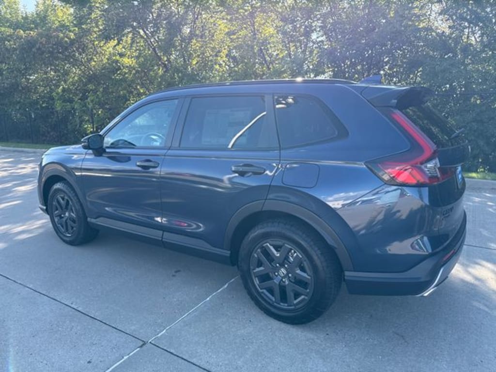 Floyd Traylor is proud to present. Canyon River Blue Metallic 2026 Honda CR-V Hybrid TrailSport AWD eCVT 2.0L I4 DOHC 16V 2.0L I4 DOHC 16V, 4-Wheel Disc Brakes, 8 Speakers, ABS brakes, Adaptive Cruise Control: Adaptive Cruise Control (ACC) with Low-Speed Follow, Air Conditioning, Alloy wheels, Apple CarPlay/Android Auto, Auto High-beam Headlights, Automatic temperature control, Blind Spot Information (BSI) System warning, Brake assist, Bumpers: body-color, Cloth Seat Trim, Compass, Delay-off headlights, Driver door bin, Driver vanity mirror, Dual front impact airbags, Dual front side impact airbags, Electronic Stability Control, Exterior Parking Camera Rear, Four wheel independent suspension, Front anti-roll bar, Front Bucket Seats, Front Center Armrest, Front dual zone A/C, Front reading lights, Fully automatic headlights, Heated door mirrors, Heated Front Bucket Seats, Heated front seats, Heated steering wheel, Illuminated entry, Knee airbag, Leather Shift Knob, Leather steering wheel, Low tire pressure warning, Occupant sensing airbag, Outside temperature display, Overhead airbag, Overhead console, Panic alarm, Passenger door bin, Passenger vanity mirror, Power door mirrors, Power driver seat, Power moonroof, Power steering, Power windows, Radio data system, Radio: 320-Watt AM/FM Audio System, Rear anti-roll bar, Rear reading lights, Rear seat center armrest, Rear side impact airbag, Rear window defroster, Rear window wiper, Remote keyless entry, Security system, Speed control, Speed-sensing steering, Speed-Sensitive Wipers, Split folding rear seat, Spoiler, Steering wheel mounted audio controls, Telescoping steering wheel, Tilt steering wheel, Traction control, Trip computer, Turn signal indicator mirrors, Variably intermittent wipers, Wheels: 18" Shark Gray.
