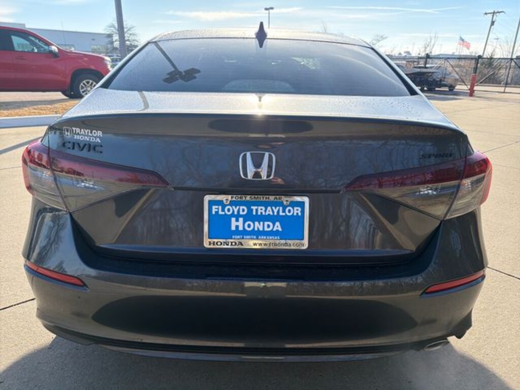 Floyd Traylor is proud to present. Meteorite Gray Metallic 2026 Honda Civic Sport FWD CVT 2.0L I4 DOHC 16V Black Artificial Leather, 4-Wheel Disc Brakes, 8 Speakers, ABS brakes, Adaptive Cruise Control: Adaptive Cruise Control (ACC) with Low-Speed Follow, Air Conditioning, Alloy wheels, AM/FM radio, Apple CarPlay/Android Auto, Auto High-beam Headlights, Automatic temperature control, Blind Spot Information (BSI) System warning, Brake assist, Bumpers: body-color, Cloth/Leatherette Seating Surfaces, Delay-off headlights, Driver door bin, Driver vanity mirror, Dual front impact airbags, Dual front side impact airbags, Electronic Stability Control, Emergency communication system: HondaLink, Exterior Parking Camera Rear, Four wheel independent suspension, Front anti-roll bar, Front Bucket Seats, Front Center Armrest, Front reading lights, Fully automatic headlights, Heated door mirrors, Illuminated entry, Knee airbag, Leather Shift Knob, Leather steering wheel, Low tire pressure warning, Occupant sensing airbag, Outside temperature display, Overhead airbag, Panic alarm, Passenger door bin, Passenger vanity mirror, Power door mirrors, Power steering, Power windows, Radio data system, Radio: 180-Watt Audio System, Rear anti-roll bar, Rear seat center armrest, Rear side impact airbag, Rear window defroster, Remote keyless entry, Security system, Speed control, Speed-sensing steering, Split folding rear seat, Steering wheel mounted audio controls, Tachometer, Telescoping steering wheel, Tilt steering wheel, Traction control, Trip computer, Wheels: 18" Gloss Black Alloy.