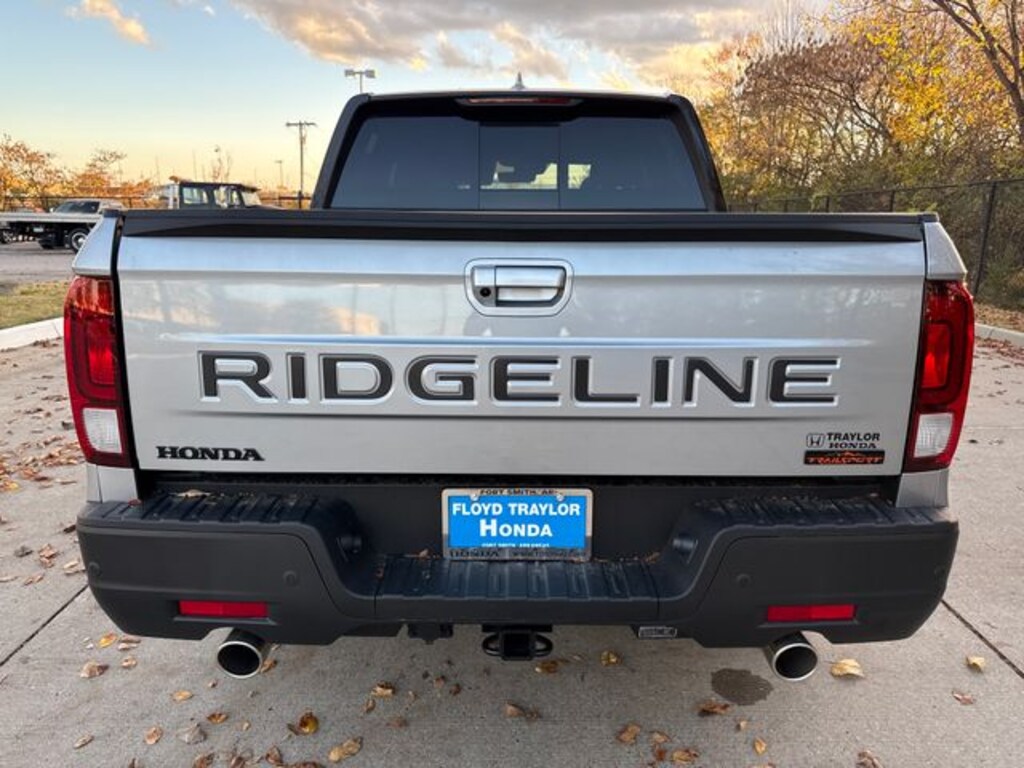 Floyd Traylor is proud to present. Solar Silver Metallic 2026 Honda Ridgeline TrailSport+ AWD 9-Speed Automatic 3.5L V6 SOHC i-VTEC 24V Black Leather, 4-Wheel Disc Brakes, 4.33 Axle Ratio, 7 Speakers, ABS brakes, Air Conditioning, Alloy wheels, AM/FM radio: SiriusXM, Auto-dimming Rear-View mirror, Automatic temperature control, Blind Spot Information (BSI) System warning, Bluetooth® Hands-Free Link, Brake assist, Bumpers: body-color, Compass, Delay-off headlights, Driver door bin, Driver vanity mirror, Driver's Seat Mounted Armrest, Dual front impact airbags, Dual front side impact airbags, Electronic Stability Control, Emergency communication system: HondaLink Assist, Exterior Parking Camera Rear, Four wheel independent suspension, Front anti-roll bar, Front Bucket Seats, Front dual zone A/C, Front fog lights, Front reading lights, Fully automatic headlights, Garage door transmitter: HomeLink, Heated door mirrors, Heated Front Bucket Seats, Heated front seats, Heated steering wheel, Honda Satellite-Linked Navigation System, HondaLink, Illuminated entry, Leather Seat Trim, Leather steering wheel, Low tire pressure warning, Memory seat, Navigation system: Honda Satellite-Linked Navigation System, Occupant sensing airbag, Outside temperature display, Overhead airbag, Overhead console, Panic alarm, Passenger door bin, Passenger seat mounted armrest, Passenger vanity mirror, Power door mirrors, Power driver seat, Power moonroof, Power passenger seat, Power steering, Power windows, Radio data system, Rear air conditioning, Rear anti-roll bar, Rear reading lights, Rear seat center armrest, Rear step bumper, Rear window defroster, Remote keyless entry, Security system, SiriusXM, Speed control, Speed-sensing steering, Split folding rear seat, Steering wheel mounted audio controls, Tachometer, Telescoping steering wheel, Tilt steering wheel, Traction control, Trip computer, Turn signal indicator mirrors, Variably intermittent wipers, Wheels: 18" HPD Black Alloy.