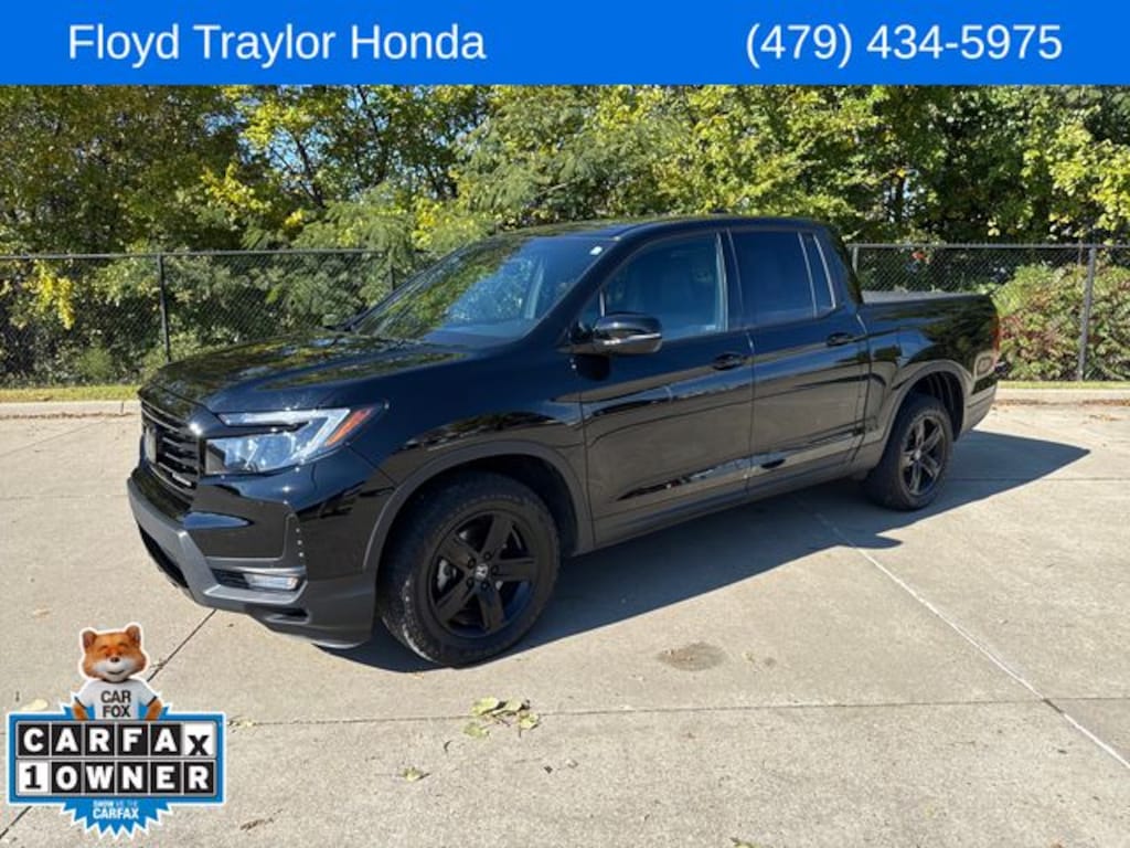 Floyd Traylor is proud to present this. Recent Arrival! CARFAX One-Owner. 2022 Honda Ridgeline Black Edition 3.5L V6 SOHC i-VTEC 24V 9-Speed Automatic Black Leather, 4-Wheel Disc Brakes, 4.33 Axle Ratio, 8 Speakers, ABS brakes, Air Conditioning, Alloy wheels, AM/FM radio: SiriusXM, Apple CarPlay/Android Auto, Auto High-beam Headlights, Auto-dimming Rear-View mirror, Automatic temperature control, Blind Spot Information (BSI) System warning, Bluetooth® Hands-Free Link, Brake assist, Bumpers: body-color, Compass, Delay-off headlights, Driver door bin, Driver vanity mirror, Driver's Seat Mounted Armrest, Dual front impact airbags, Dual front side impact airbags, Electronic Stability Control, Exterior Parking Camera Rear, Forward collision: Collision Mitigation Braking System (CMBS) + FCW mitigation, Four wheel independent suspension, Front anti-roll bar, Front Bucket Seats, Front dual zone A/C, Front fog lights, Front reading lights, Fully automatic headlights, Garage door transmitter: HomeLink, Heated door mirrors, Heated Front Bucket Seats, Heated front seats, Heated steering wheel, Honda Satellite-Linked Navigation System, Illuminated entry, Low tire pressure warning, Memory seat, Navigation system: Honda Satellite-Linked Navigation System, Occupant sensing airbag, Outside temperature display, Overhead airbag, Overhead console, Panic alarm, Passenger door bin, Passenger seat mounted armrest, Passenger vanity mirror, Perforated Leather Seat Trim, Power door mirrors, Power driver seat, Power moonroof, Power passenger seat, Power steering, Power windows, Radio data system, Radio: 540-Watt Premium Audio System w/8 Speakers, Rear air conditioning, Rear anti-roll bar, Rear reading lights, Rear seat center armrest, Rear step bumper, Rear window defroster, Remote keyless entry, Security system, SiriusXM, Speed control, Speed-sensing steering, Split folding rear seat, Steering wheel mounted audio controls, Tachometer, Telescoping steering wheel, Tilt steering wheel, Traction control, Trip computer, Turn signal indicator mirrors, Variably intermittent wipers, Wheels: 18" Exclusive Gloss Black Alloy. Odometer is 19957 miles below market average!